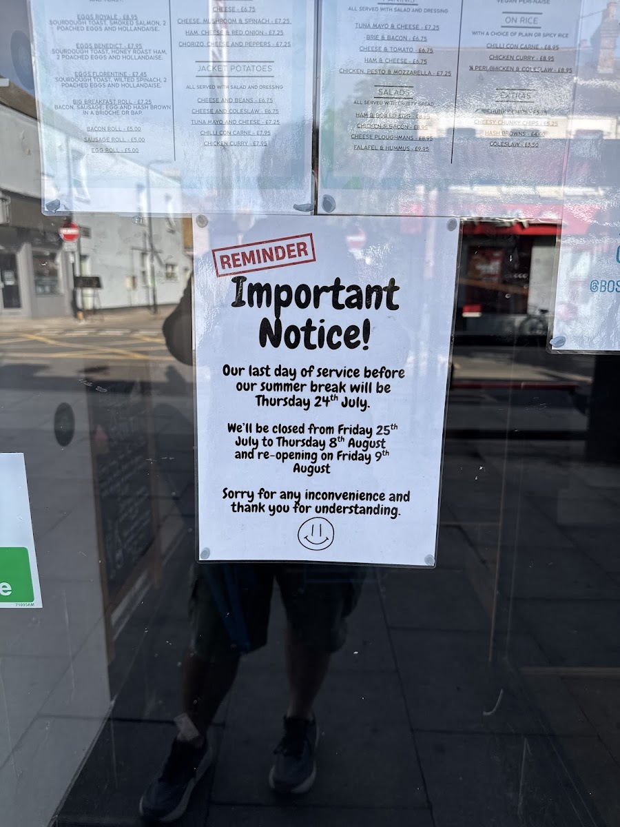 The menu also highlights some popular bakery items and salads, such as Sausage Roll, Croissant, and Greek Salad. The overall structure covers substantial breakfast meals, light bite options, and customizable jacket potatoes, making it suitable for quick orders or leisurely café visits.